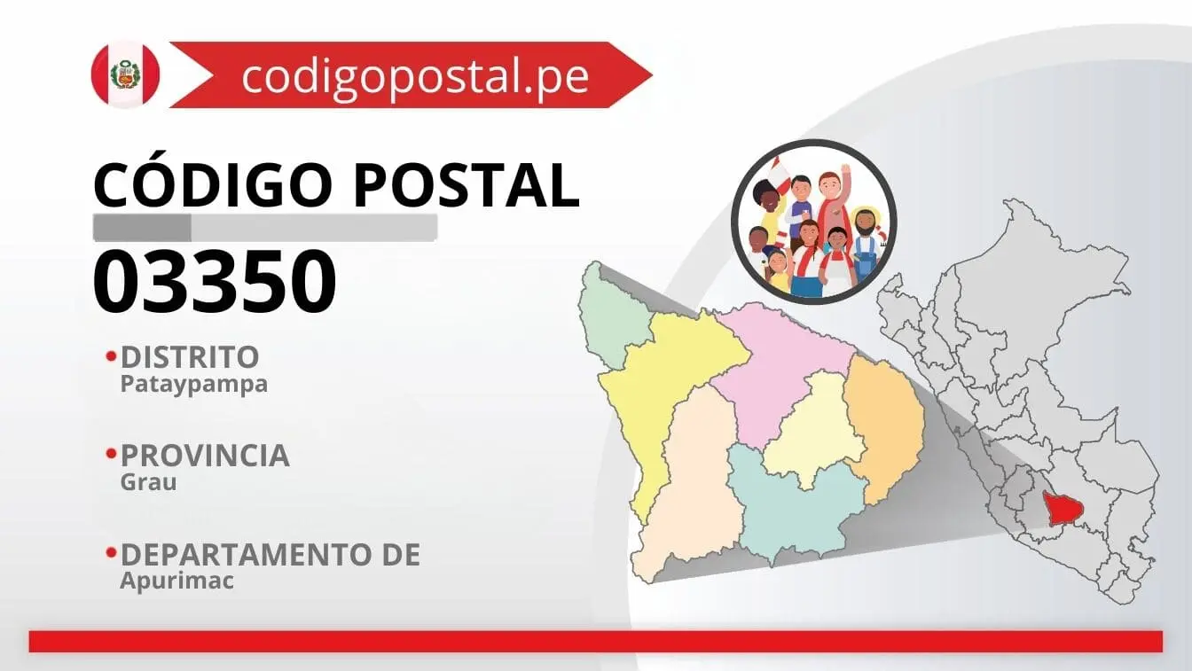 El código postal 03350 corresponde a un total de 16 centros poblados o ciudades, ubicado en la provincia de Grau del departamento de Apurimac.