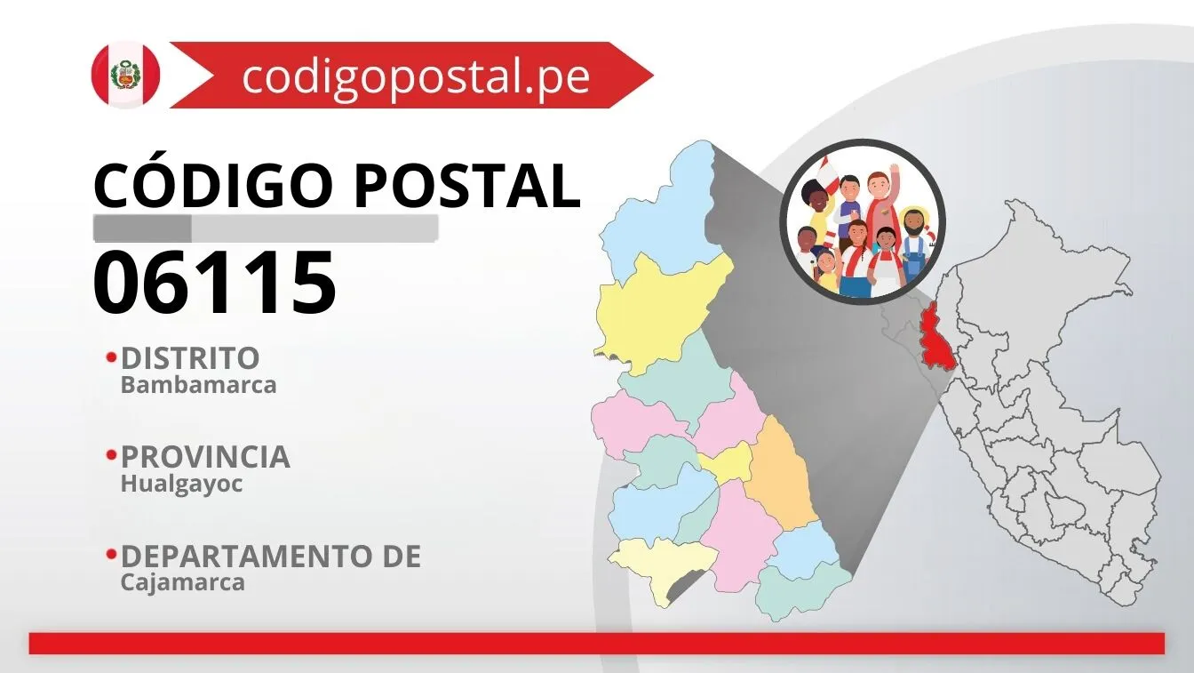 El código postal 06115 corresponde a un total de 164 centros poblados o ciudades, ubicado en la provincia de Hualgayoc del departamento de Cajamarca.