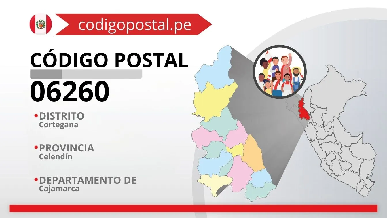 El código postal 06260 corresponde a un total de 57 centros poblados o ciudades, ubicado en la provincia de Celendín del departamento de Cajamarca.