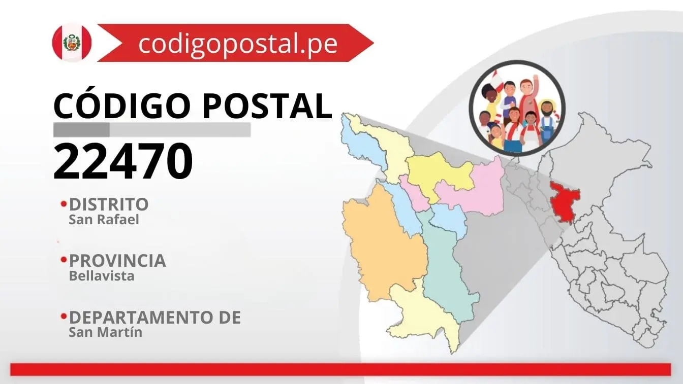 El código postal 22470 corresponde a un total de 40 centros poblados o ciudades, ubicado en la provincia de Bellavista del departamento de San Martín.